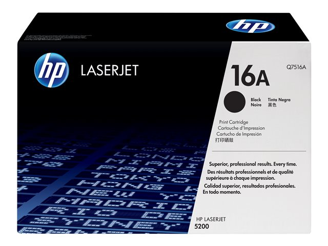 HP 16A - Svart - original - LaserJet - tonerpatron (Q7516A) - for LaserJet 5200, 5200dtn, 5200L, 5200Lx, 5200n, 5200tn Q7516A