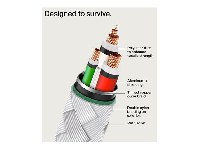 Discover the Belkin BOOST CHARGE USB-C cable, a durable and flexible charging solution designed to meet the demands of daily use. Crafted with a 30,000 bend lifespan and a double braided nylon jacket, this cable is built to last and resist wear and tear. It supports USB Power Delivery (60 W), offering fast and efficient charging for your devices, while also facilitating seamless sync and charge capabilities. Compliant with USB and USB 2.0 standards, and featuring strain relief for added durability, this cable ensures a reliable connection and performance. Whether at home, in the office, or on the move, the Belkin BOOST CHARGE USB-C cable is the perfect companion for keeping your devices powered and connected.