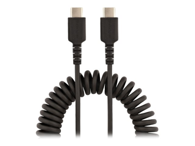 StarTech.com 20in (50cm) USB C Charging Cable, Coiled Heavy Duty Fast Charge & Sync USB-C Cable, High Quality USB 2.0 Type-C Cable, Rugged Aramid Fiber, TPE, 3A, S20, iPad, Pixel - Durable Male to Male USB, Black - USB-kabel - 24 pin USB-C (hann) til 24 pin USB-C (hann) - USB 2.0 - 3 A - 50 cm - rullet sammen - svart R2CCC-50C-USB-CABLE