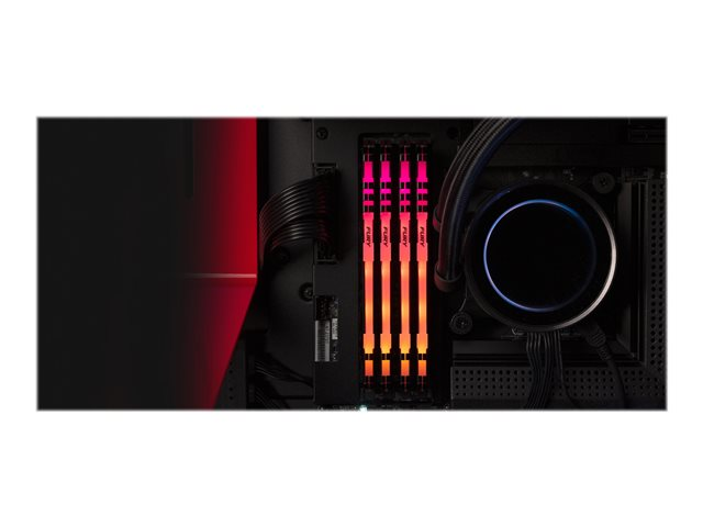 Kingston FURY Beast RGB delivers a boost of performance and style with high speeds, aggressive styling and RGB lighting that runs the length of the module for smooth and stunning effects. It features Plug-and-Play automatic overclocking at high speeds and is both Intel XMP-ready and ready for AMD Ryzen. FURY Beast RGB stays cool with its stylish, low-profile heat spreader.
