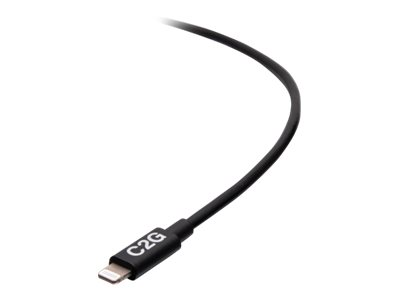 C2G 6ft (1.8m) USB-C Male to Lightning Male Sync and Charging Cable - Black - Lightning-kabel - 24 pin USB-C hann til Lightning hann - 1.83 m - svart - USB Power Delivery (20 W), up to 480 Mbps