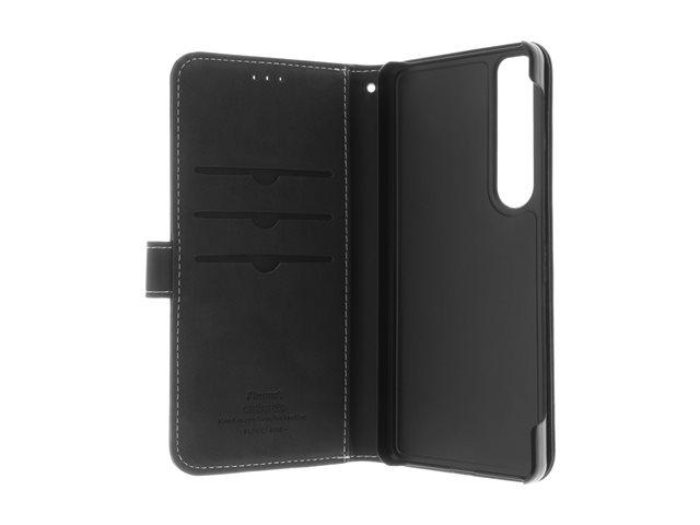 Insmat Exclusive Flip Case - Lommebok for mobiltelefon - ekte skinn, kartong+papir, polykarbonat, bomullssting - svart - for Sony XPERIA 1 VI
