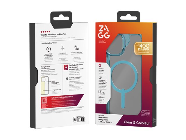 The Zagg Santa Cruz Snap protective cover is designed for cell phones, offering protection without compromising on style. This back cover is crafted with a graphene lining that provides a secure grip and supports wireless charging, ensuring convenience on-the-go. Its slim design maximizes aesthetic appeal while maintaining functionality, making it an ideal choice for those who prioritize form and function.