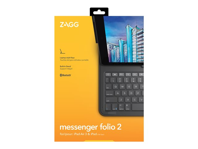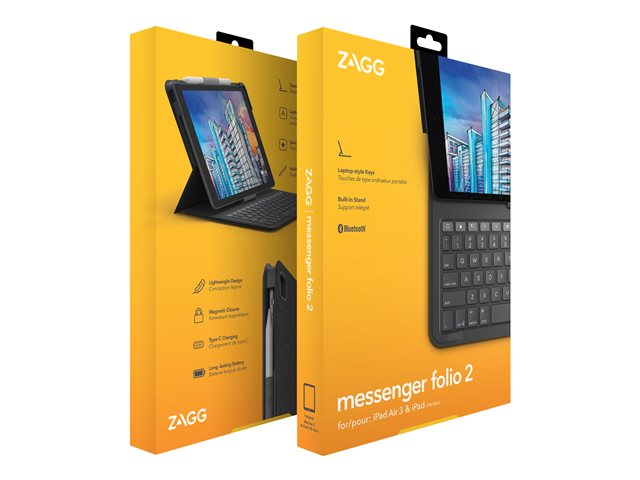 ZAGG Messenger Folio 2 - Tastatur og folioveske - Bluetooth - Nordisk - koksgrå tastatur, koksgrå boks - for Apple 10.2-inch iPad; 10.5-inch iPad Air (3. generasjon)