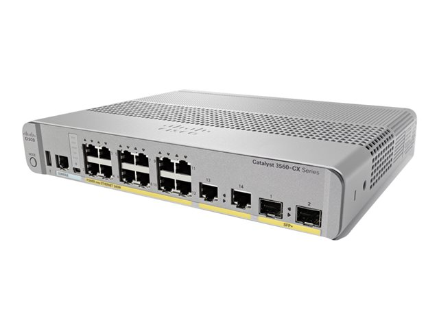Cisco Catalyst 3560CX-12PD-S - Switch - Styrt - 12 x 10/100/1000 (PoE+) + 2 x kombo-SFP+ - stasjonær, rackmonterbar, DIN-skinnemonterbar, veggmonterbar - PoE+ (240 W)